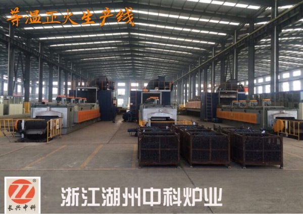 低碳鋼由于退火后硬度太低,切削加工時(shí)產(chǎn)生粘刀的現(xiàn)象,切削性能差,通過(guò)正火提高硬度,等溫正火爐可改善切削性能,某些中碳結(jié)構(gòu)鋼零件可用正火代替調(diào)質(zhì),簡(jiǎn)化熱處理工藝。經(jīng)過(guò)共析鋼正火加熱刀Acm以上,使原先呈網(wǎng)狀的滲碳體全部溶入到奧氏體,然后用較快的速度冷卻,抑制滲碳體在奧氏體晶界的析出,從而能消除網(wǎng)狀碳化物,改善過(guò)共析鋼的組織。 等溫正火爐生產(chǎn)線(xiàn)工業(yè)爐的結(jié)構(gòu)、加熱工藝、溫度控制和爐內(nèi)氣氛等,都會(huì)直接影響加工后的產(chǎn)品質(zhì)量。在等溫正火爐生產(chǎn)線(xiàn)鍛造加熱爐內(nèi),提高金屬的加熱溫度,可以降低變形阻力,但溫度過(guò)高會(huì)引起晶粒長(zhǎng)大、氧化或過(guò)燒,嚴(yán)重影響工件質(zhì)量。在熱處理過(guò)程中,如果把鋼加熱到臨界溫度以上的某一點(diǎn),然后突然冷卻,就能提高鋼的硬度和強(qiáng)度;如果加熱到臨界溫度以下的某一點(diǎn)后緩慢冷卻,則又能使鋼的硬度降低而使韌性提高。 普通結(jié)構(gòu)零件的Z終熱處理 ,由于正火后工件比退火狀態(tài)具有更好的綜合力學(xué)性能,對(duì)于一些受力不大、性能要求不高的普通結(jié)構(gòu)零件可將正火作為Z終熱處理,以減少工序、節(jié)約能源、提高生產(chǎn)效率。此外,輥棒等溫正火爐生產(chǎn)線(xiàn)對(duì)某些大型的或形狀較復(fù)雜的零件,當(dāng)淬火有開(kāi)裂的危險(xiǎn)時(shí),正火往往可以代替淬火、回火處理,作為Z終熱處理。
