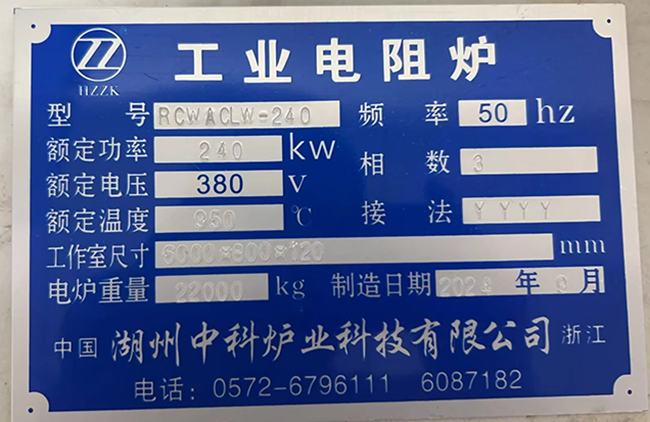 型號(hào):RCWRC-160-6 額定功率:160Kw 額定電壓:380 額定溫度:650℃ 工作室尺寸:8000×1000×150mm